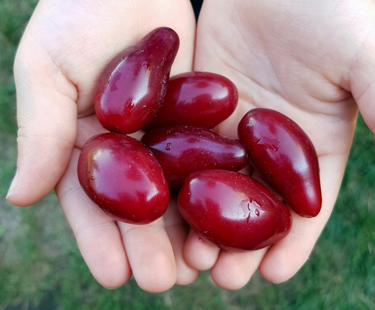 Созревший кизил напоминает россыпь ярких бусин, разбросанных среди блестящей зелени листвы. Его розово-красные плоды созревают в аккуратных гроздьях на концах веток. К моменту сбора урожая ягоды становятся почти прозрачными, и внутри спелых плодов можно увидеть косточки. Вкус кизила напоминает черешню, но с более выраженной кислинкой, что делает его особенно популярным!