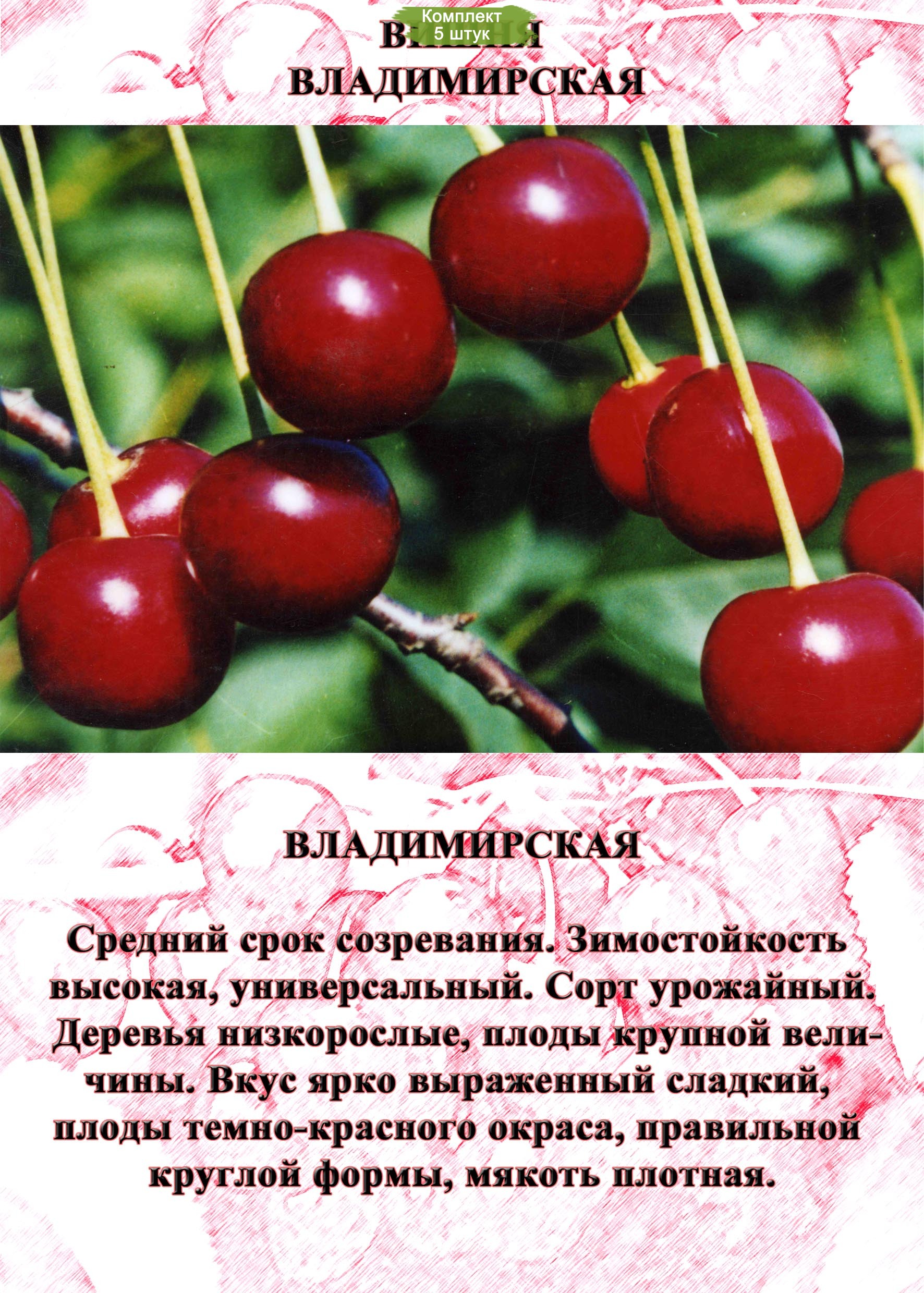 Саженцы Вишни Владимирская Поздняя - комплект 5 шт.