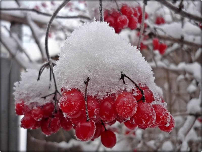 Калина декоративна в любое время года. В мае-июне она покрывается белыми душистыми цветками, собранными в щитки, которые цветут около двух недель. Осенью кустарник особенно эффектен благодаря яркой окраске листьев и обильным гроздьям ярко-красных плодов. Плоды калины – сочные красные костянки с плоскими косточками, которые становятся съедобными после первых морозов. Листья, цветы, ягоды и кора калины обладают высокоэффективными лечебными свойствами.